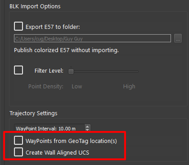 8. Then, on the BLK import section, select the interval for WayPoint creation.