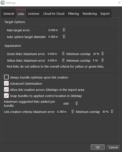 In Settings, Cloud-to-Cloud overlap percentage is added to the criteria to color links red, yellow or green.