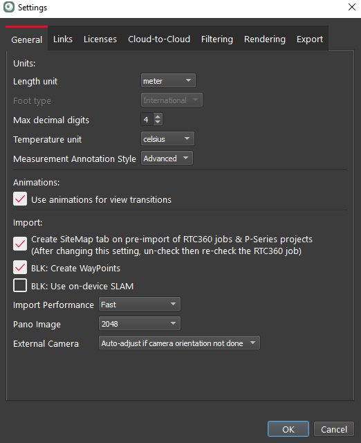 This setting controls the units used for the temperature readout from the IR images from the BLK360.