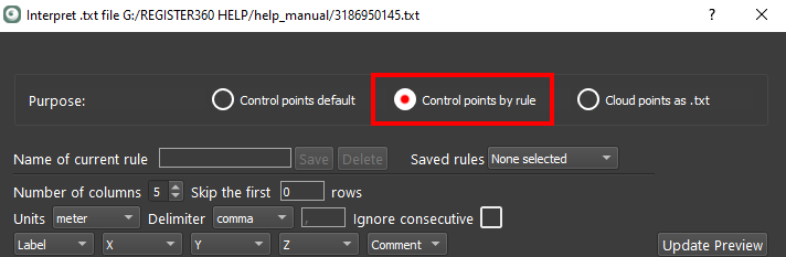 Select the desired formatting for each column (i.e. Label, X, Y, Z and comment)