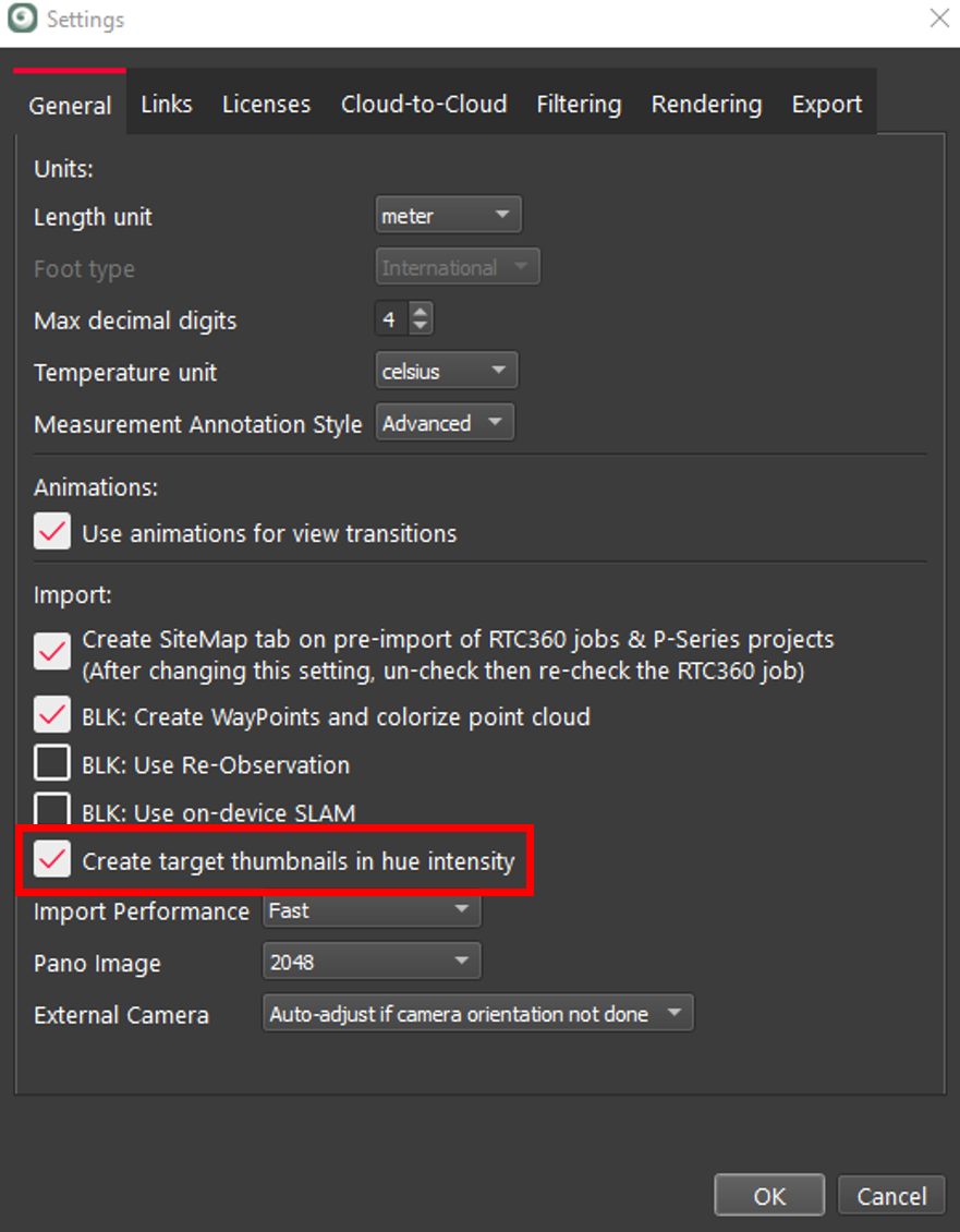 Inserting Virtual Targets with BLK2GO data can have issues if the Pano is on. The workaround is to turn off the pano image and then create a virtual target.