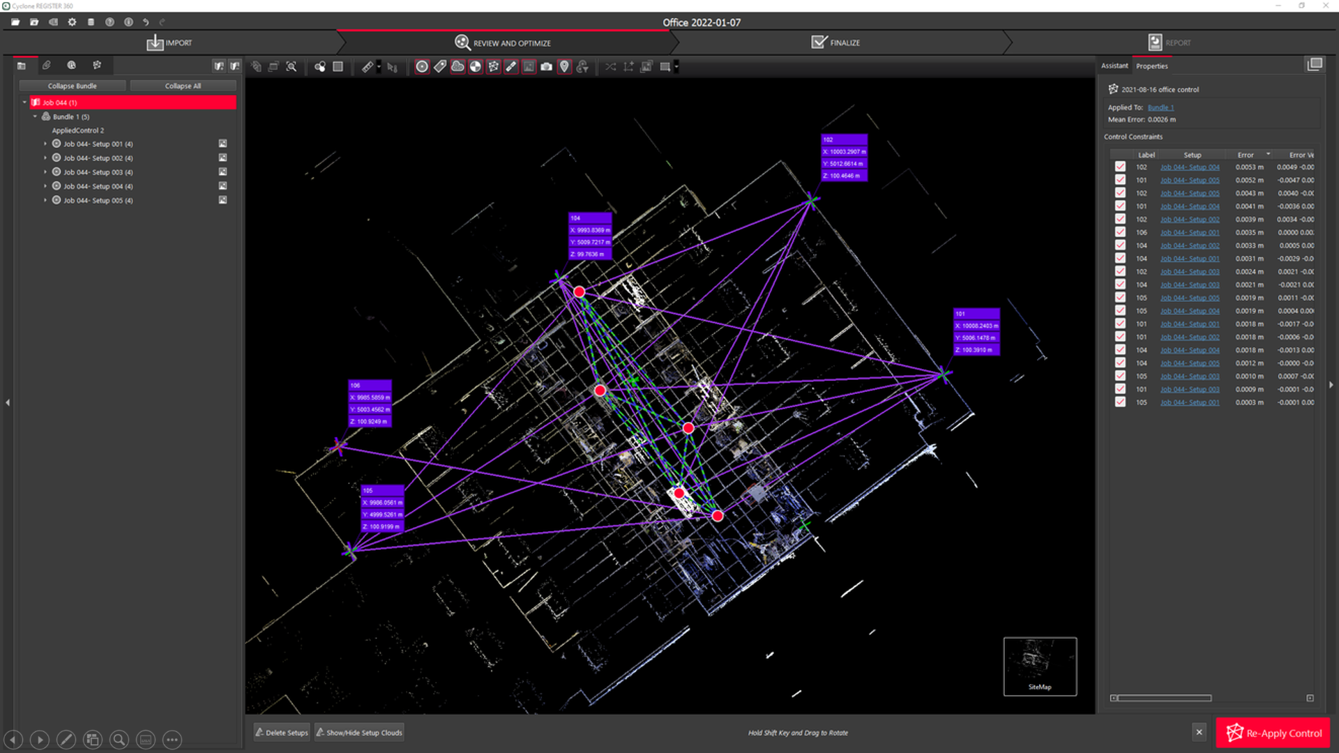 Next, open each Setup in cloud view to label the targets to match them to the control file.