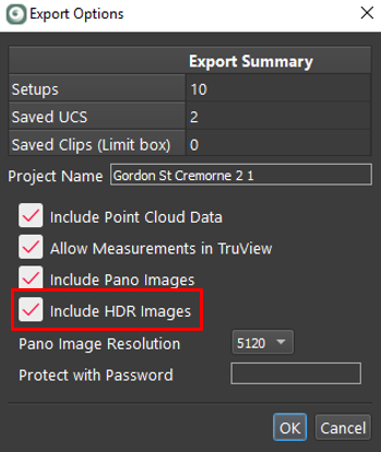 Users have the option in the options dialog, Include HDR Images. If not needed, excluding HDR images will save export time and file size. LDR tone mapped images will be exported instead.