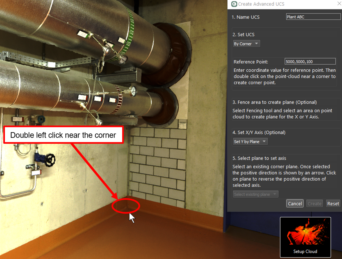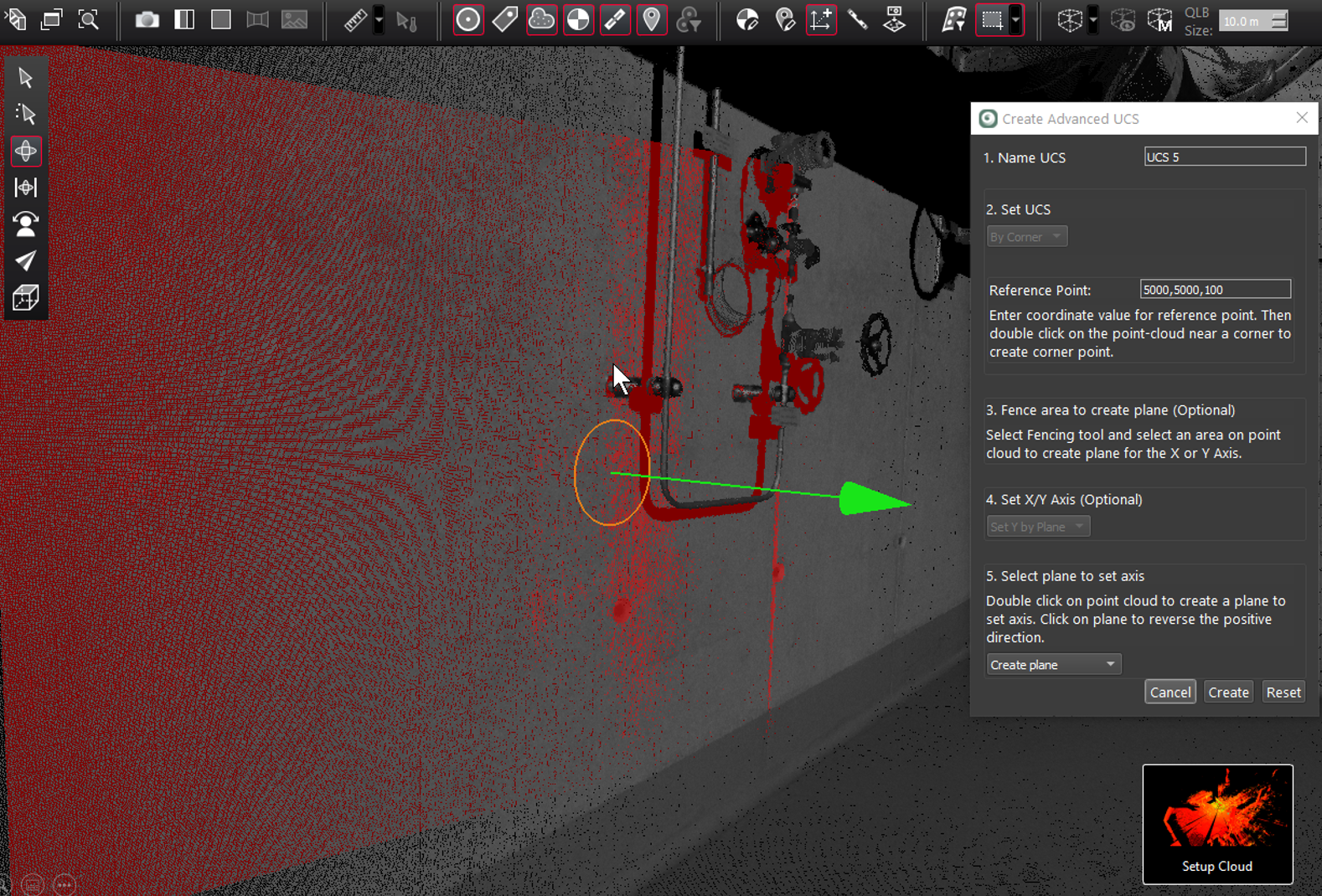 The method uses the vertex from the region grow corner to set the UCS, but instead of using the corner planes to set X or Y, the user clicks on another area to grow a plane to set X or Y.