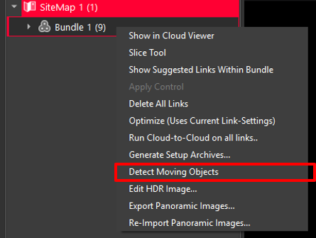 To run the filter, right-click on the bundle and execute the Detect Moving Objects command.