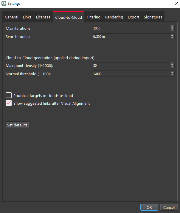 There is a new option in the Cloud-to-Cloud Settings tab called – Show Suggested links after Visual Alignment. If unchecked, Cyclone REGISTER 360 PLUS will no longer search for additional links after Visual Alignment.
