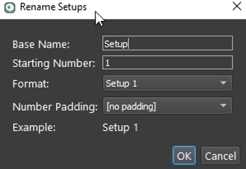 Next, enter a naming convention and numbering sequence and click OK to rename the Setups: