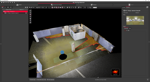 When using on-device LiDAR scans for gap filling, they will be combined within the scan in which they were collected. They can be visually identified within the Setup once in Cyclone REGISTER 360 PLUS but they cannot be extracted or imported separately. Due to the nature of the on-device LiDAR data, its accuracy is not characterized. When combined with TLS data, the bundle statistics (bundle error etc.) will reflect the accuracy and quality of the TLS data only. Users wishing to have greater insight and accuracy of their project accuracy should use the standalone import option.