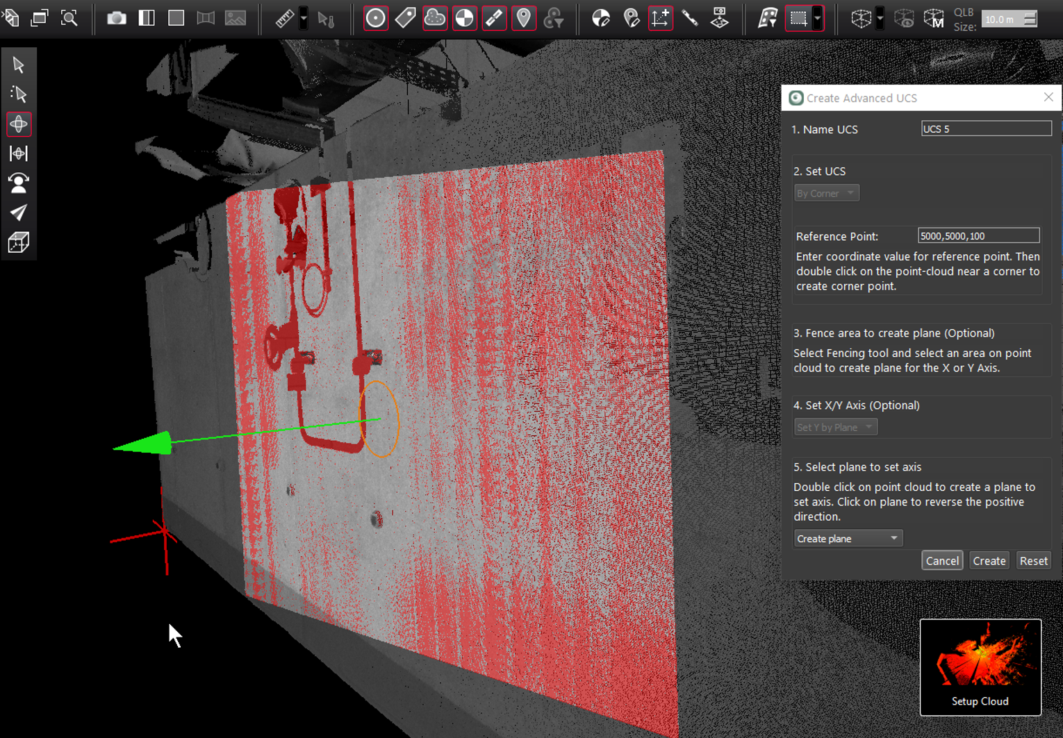 The method uses the vertex from the region grow corner to set the UCS, but instead of using the corner planes to set X or Y, the user clicks on another area to grow a plane to set X or Y.