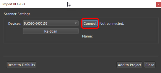Click the Connect button to establish a connection to the scanner.