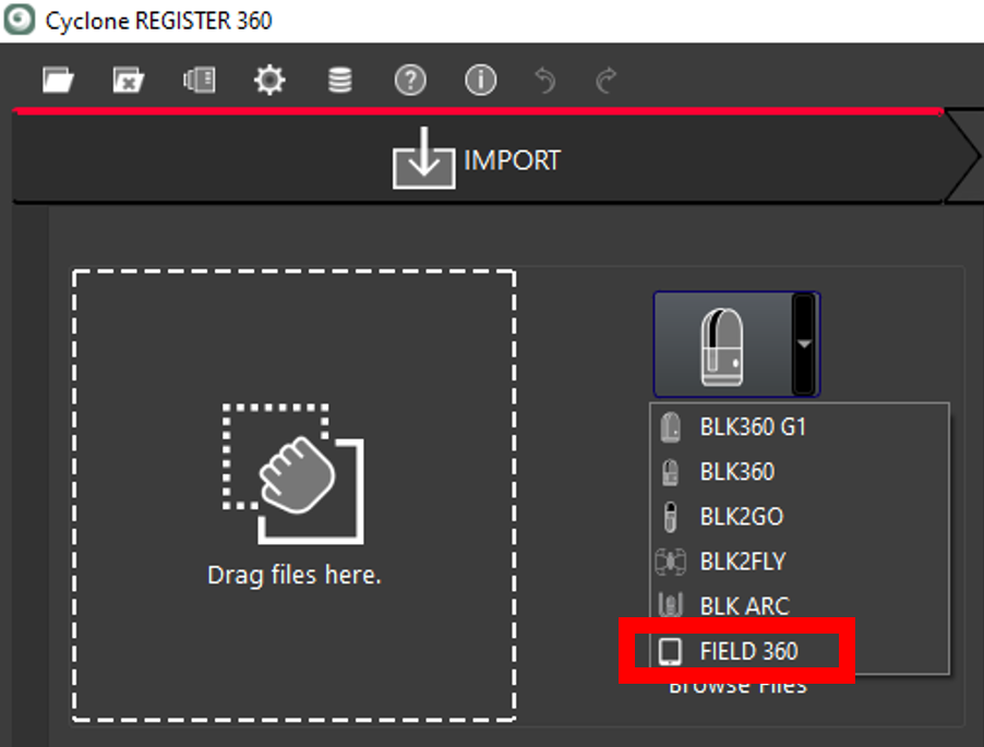 From the dropdown in the import area, select FIELD 360.