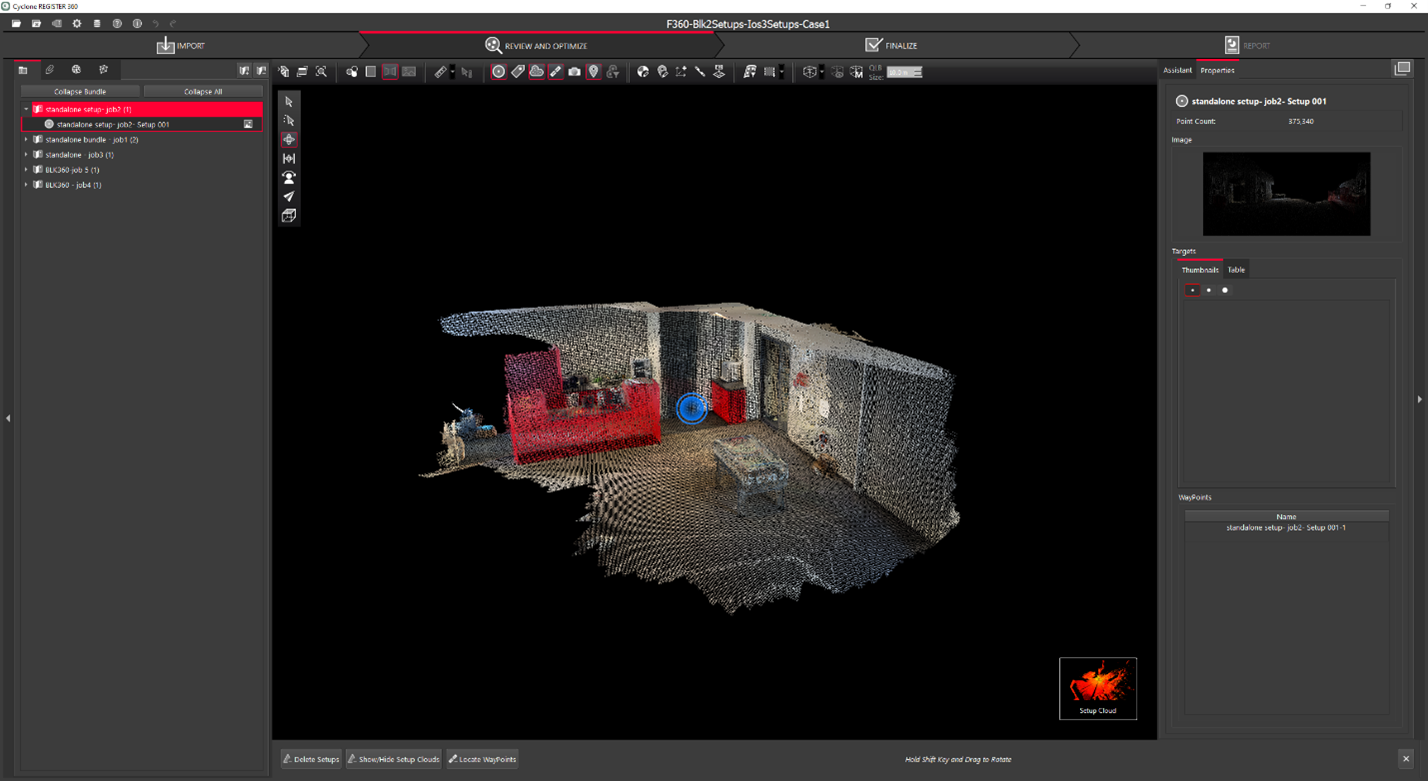 Selecting a Job will select all the scans in that job, selecting a Setup will only select that setup.