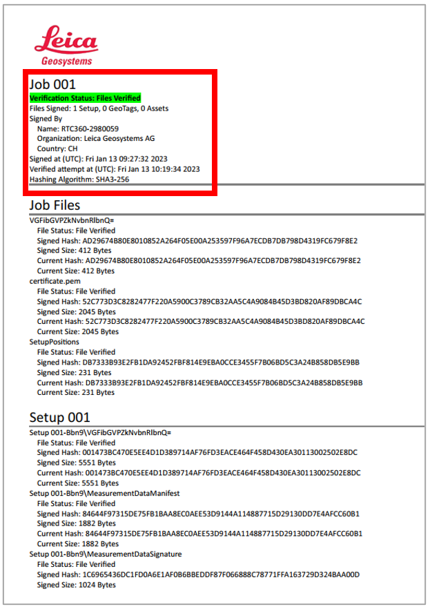 The feature enables users to prove the integrity of secure job data when the job is imported into Leica Cyclone REGISTER 360 PLUS.