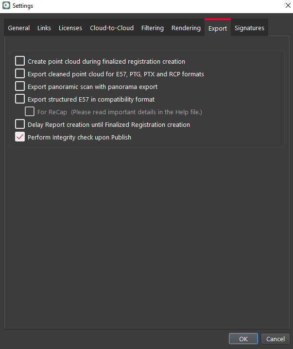 Upon creation of a finalized registration, this option controls if a point cloud is created during this step.
