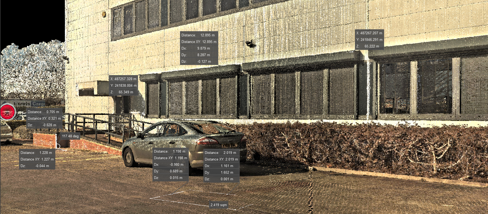 Simple Mode displays a condensed version of the information while Advanced Mode displays the coordinates in addition to the overall measurement.