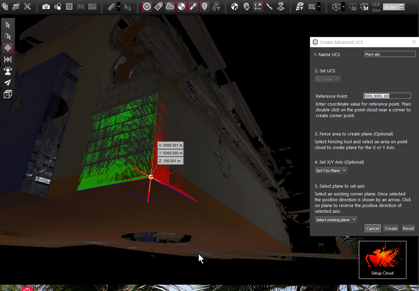 Click on one of the existing corner planes to set Y or X axis based in the selection in step 7 above. In this example the Y axis is set to the red plane with the positive direction indicated by the arrow.