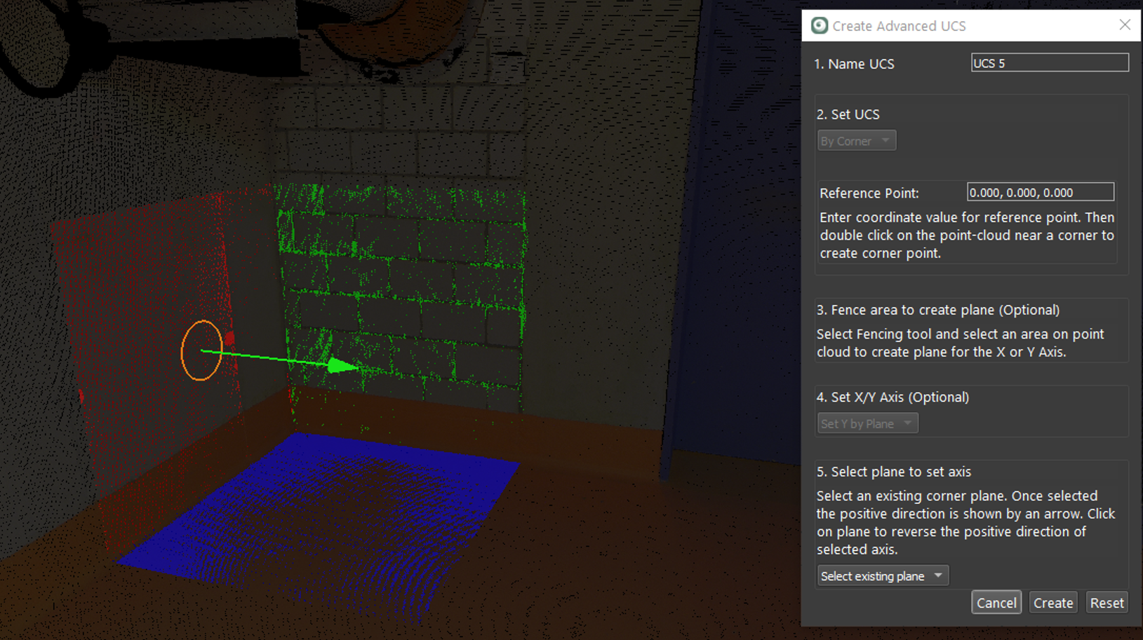 The method uses the vertex from the region grow corner to set the UCS, but instead of using the corner planes to set X or Y, the user clicks on another area to grow a plane to set X or Y.