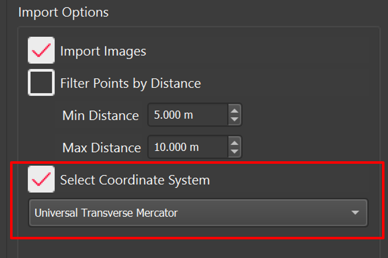 To make use of the GPS information select the Import Option Select Coordinate System.