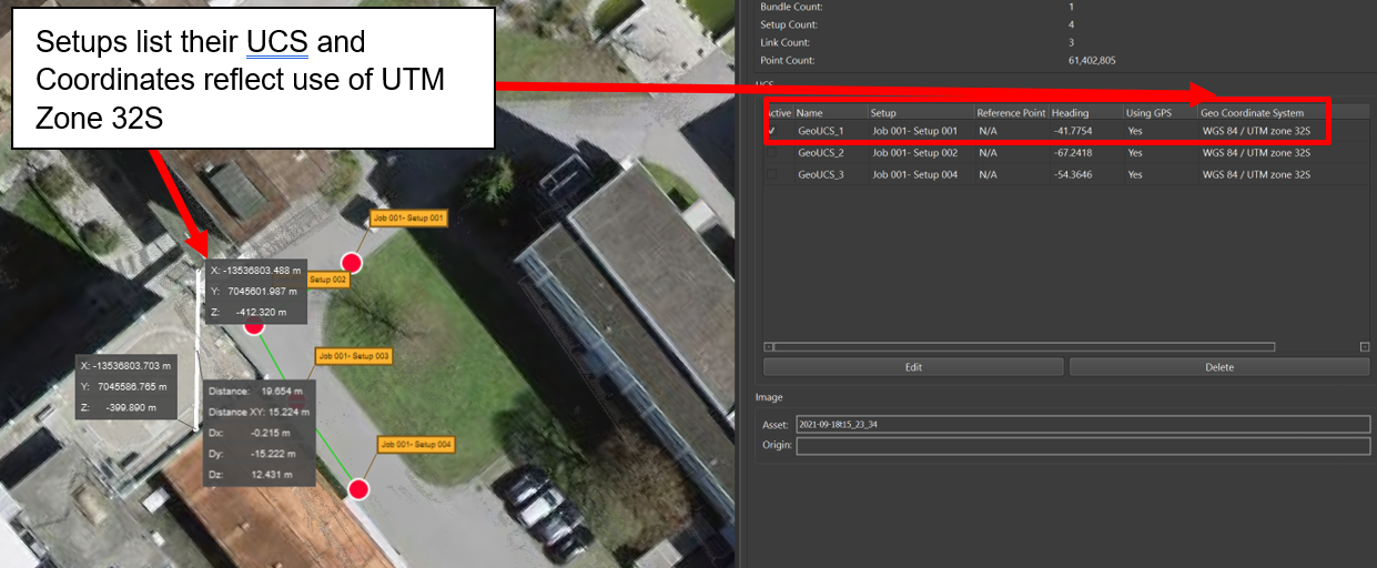 Once imported, the Setups and/or Bundles will have an associated UCS, listing if GPS was used and which projection (i.e. UTM Zone 32S).