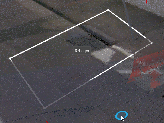 To measure area, users should select the Measure Area option, then select two points along a regular plane to form a leg of the box, drag out the shape, and click.