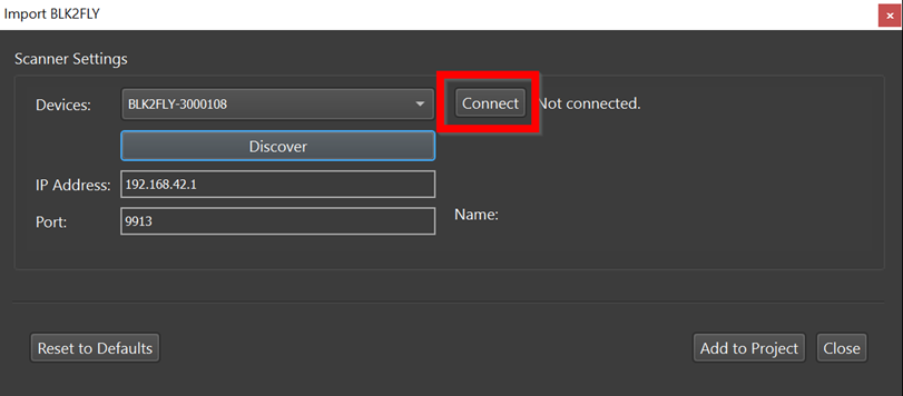 4. Click the Connect button to establish a connection to the scanner.
