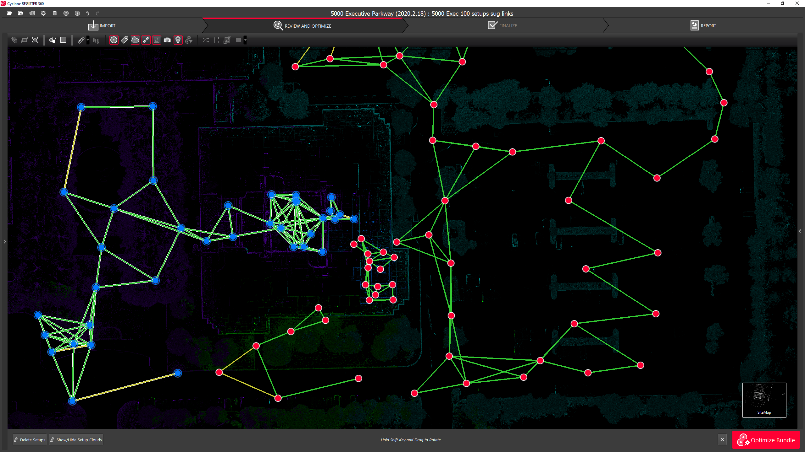 The user can choose between a hue/intensity map, grayscale intensity map, and the original color from the scanner for the Point Cloud.