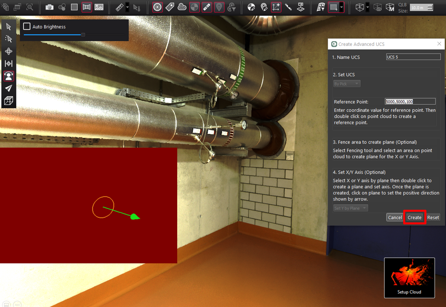 At this point, the Create button can be clicked, and the point cloud’s coordinate system will be set from the vertex (5000,5000,100).