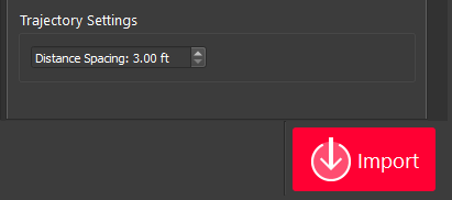 Then, on the lower-right side of the Import area, select the interval for WayPoint creation. The default is one WayPoint every 10m or 30 feet.