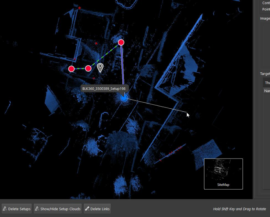 To rotate a setup or bundle click on a setup in the SiteMap view then hold down the shift key and drag the mouse away from the setup. A rubber band indicator will appear and allow rotation of the setup and or bundle.