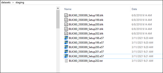 10. The E57 files created with the registration transformation and a text file showing the registration results and bundle errors are copied to the staging folder.