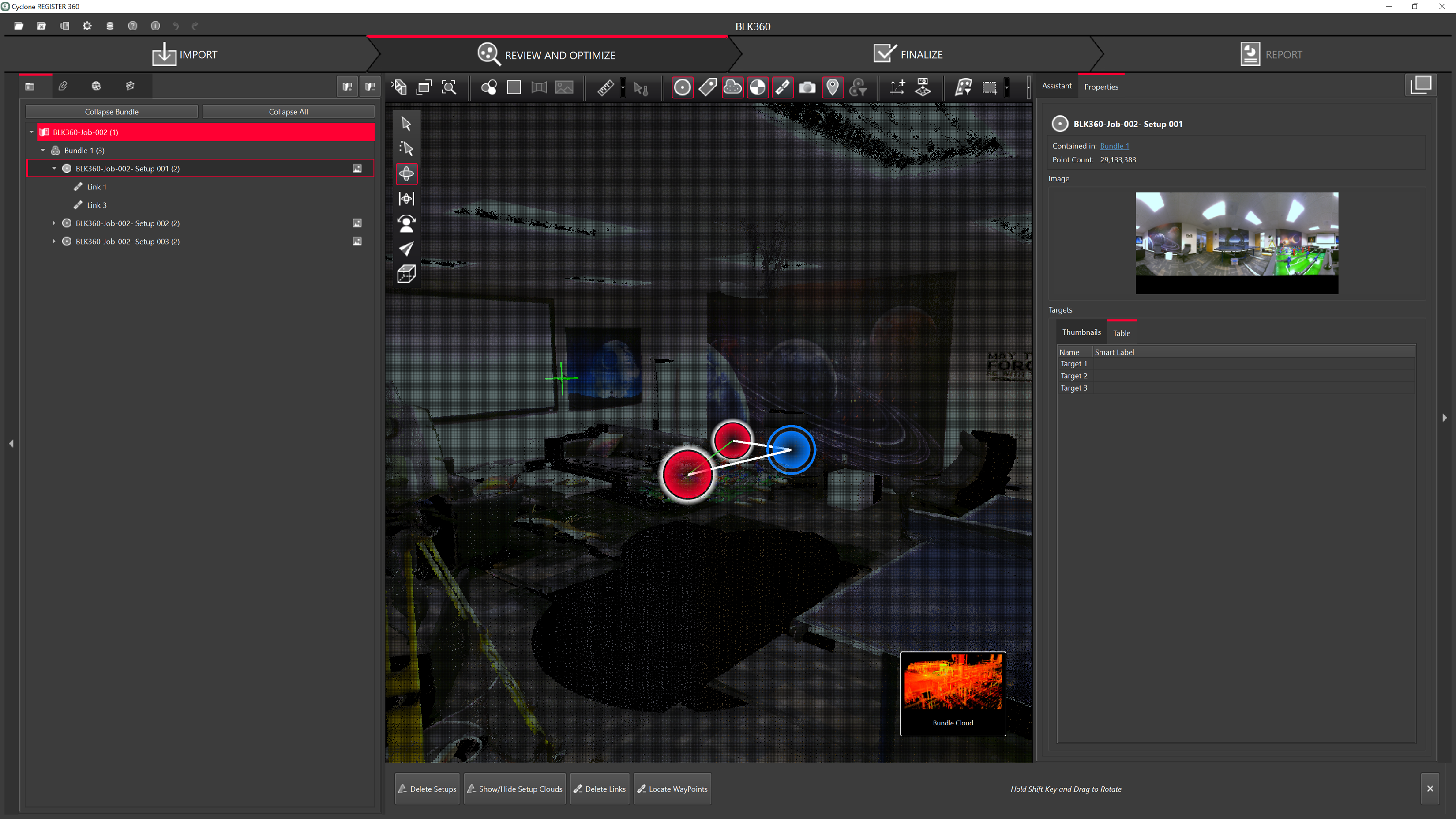 Any work done on FIELD 360, e.g. pre-registering and creating bundles will be synced back to the BLK360. Importing from the BLK360 will have the updated information.