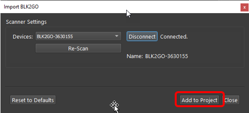 Then click the Add to Project button. This will add all available Walks to the import panel.