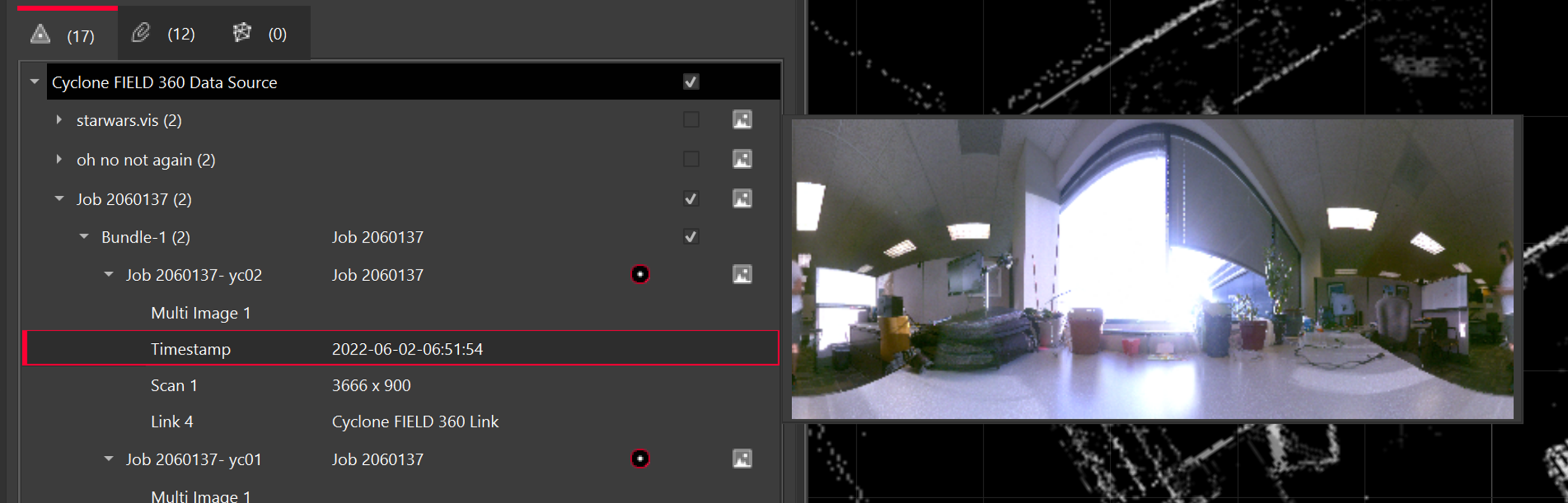 Note: When connecting to Cyclone FIELD 360, there are LWPOs and preview images.