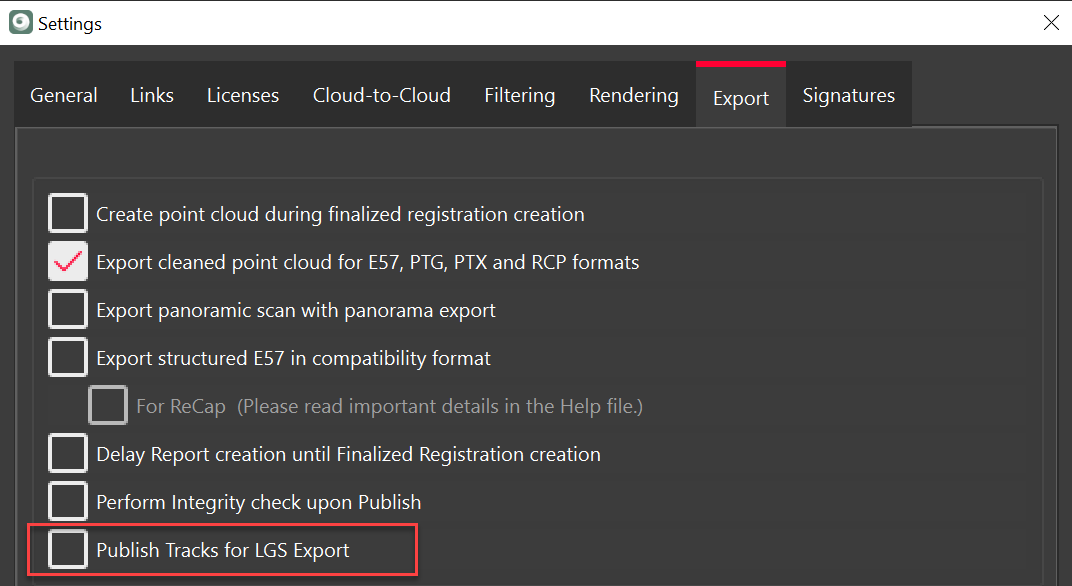 Go to Settings and check the new option- Publish Tracks for LGS Export.