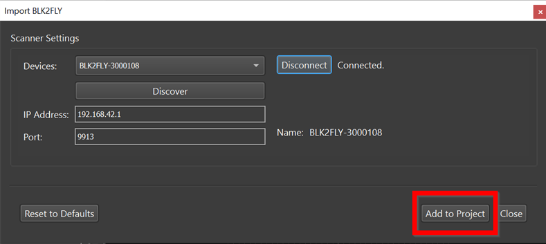 5. Then click the Add to Project button. This will display all available Scans to the Import panel.