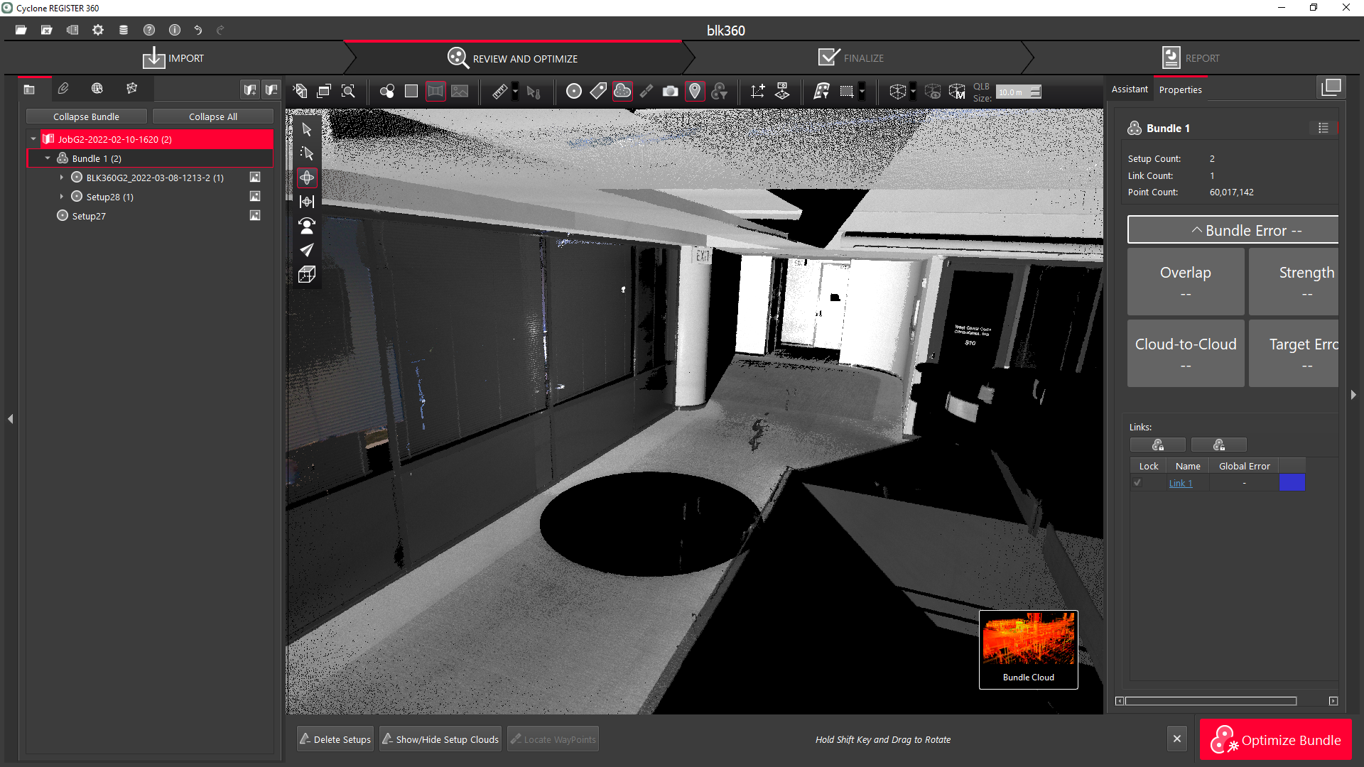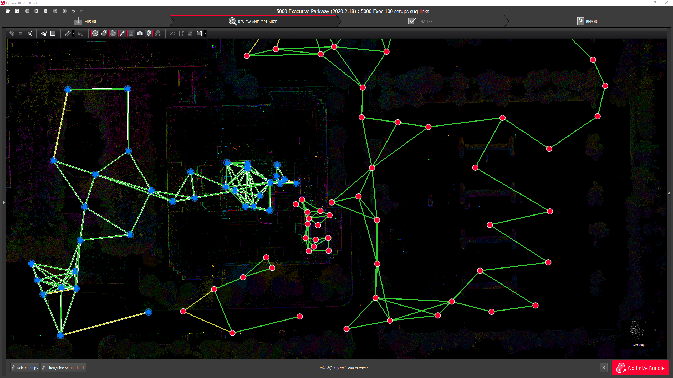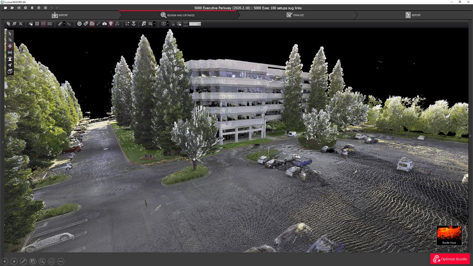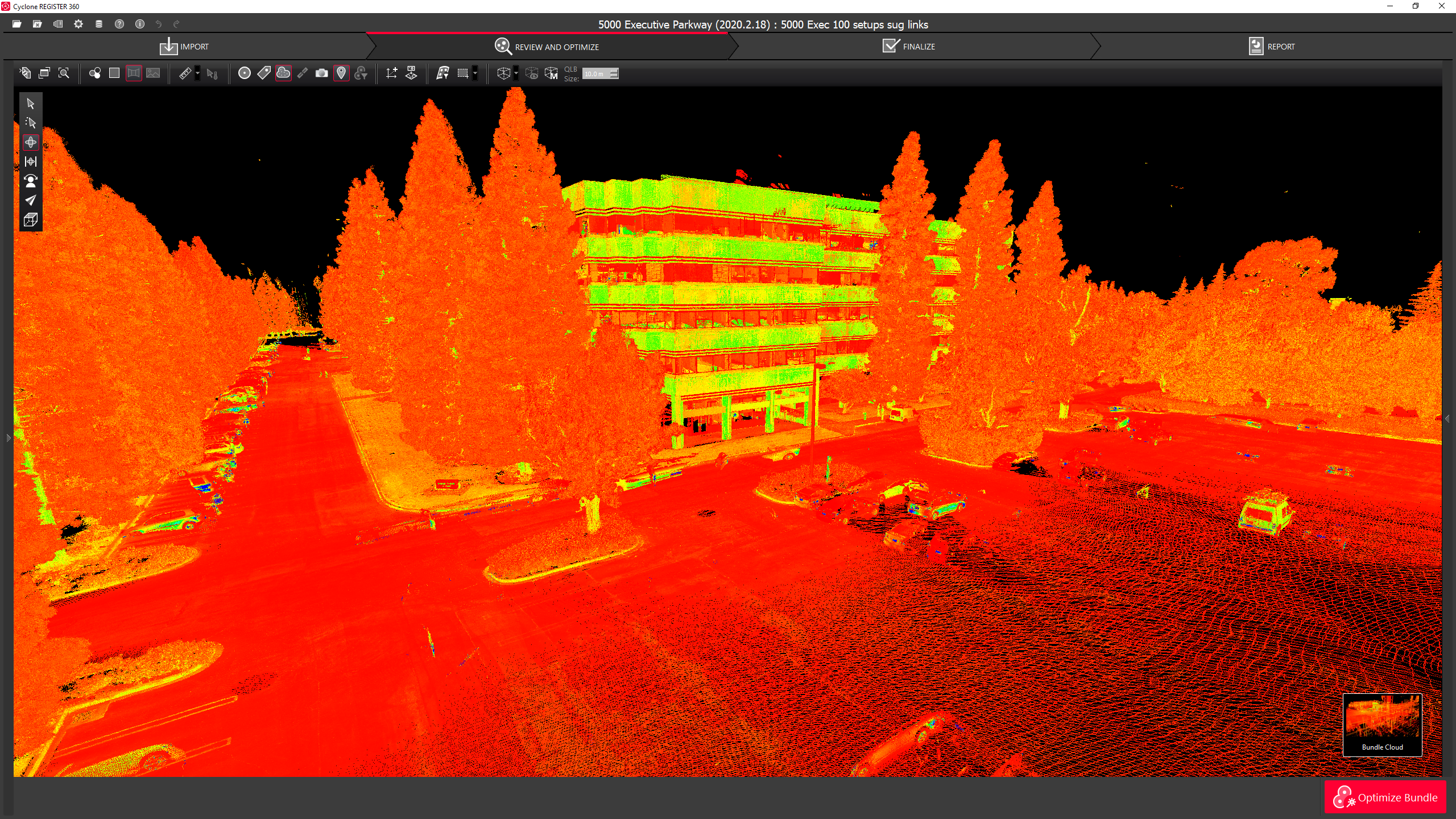 The user can choose between a hue/intensity map, grayscale intensity map, and the original color from the scanner for the Point Cloud.