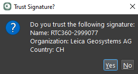 The integrity of data is key across industries but of particular importance within public safety where data integrity is key to the maintenance of public trust. A new Data Security feature has been introduced in Firmware version 6.0 for RTC360 and RTC360 LT laser scanners which enables Cyclone REGISTER 360 PLUS to verify data signatures from the scanners.