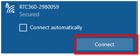 Connect to a scanner’s WLAN network from the Windows Network settings interface by clicking the Connect button and entering the scanner’s WLAN password.
