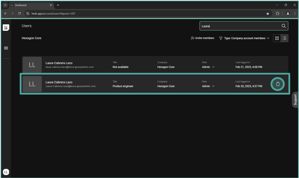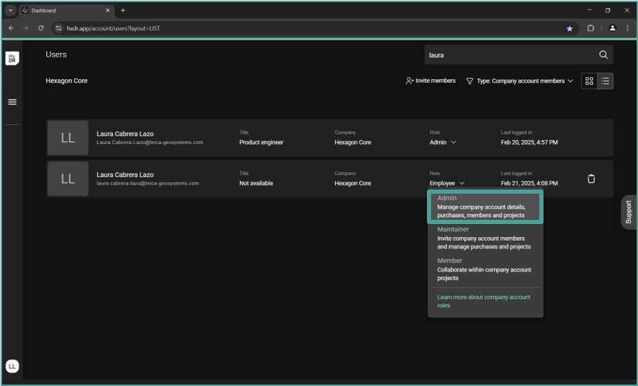 계정이 처음 SSO 없이 생성되었고 이미 초대받은 사용자들이므로, 해당 사용자는 로그인하여 새 사용자를 만들어야 합니다 https://hxdr.app/ 그들의 SSO 자격 증명과 함께 말입니다. 이 과정은 동일 계정 내 각 개인(프로젝트가 할당되지 않은)에 대해 두 번째 사용자를 생성합니다. 새 사용자는 "사용자" 메뉴에 나타나며, 관리자는 기본적으로 "직원"으로 할당된 역할을 관리할 수 있습니다.