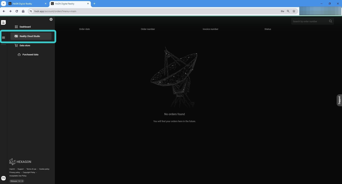 화면 왼쪽의 햄버거 메뉴를 클릭한 후 Reality Cloud Studio를 클릭해 플랫폼 내에서 직접 프로젝트를 시작하는 여정을 시작하세요.