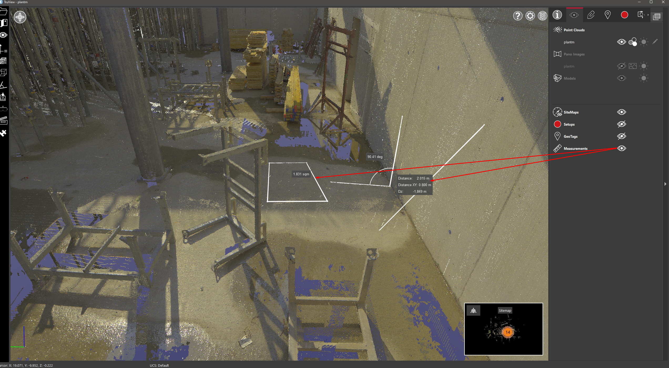 Left click the Measurement toggle button to toggle the measurements on/off.