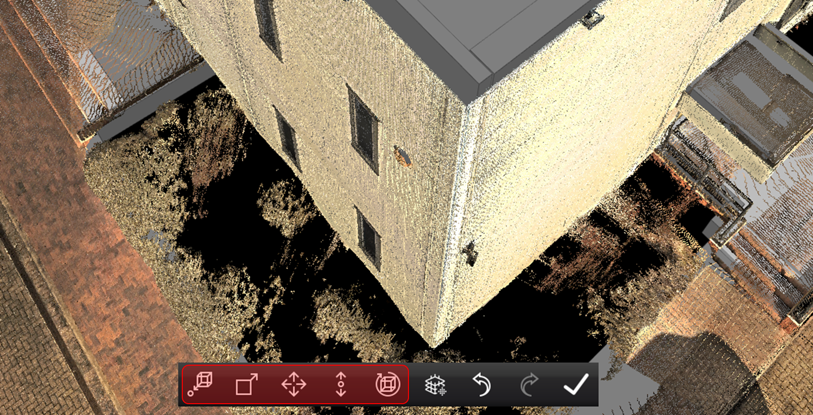 The Shaded Surface Lighting mode can be accessed and toggled On/Off using the “Shaded” icon in the Toolbar is available for all point clouds coloring modes, including Color from Scanner, Hue/Intensity, Grayscale Intensity, Color by Classification and Color by Setup.