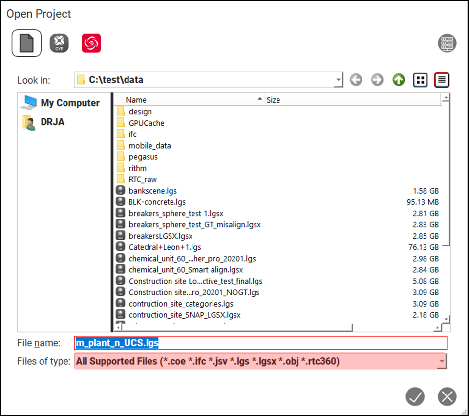 The TruView project browser can be used to browse to local projects, Cyclone Enterprise projects and JetStream Enterprise projects. It can also be used to browse to models once a project that supports them has be opened. The project browser can be invoked by selecting the browse projects button at the top of the toolbar.
